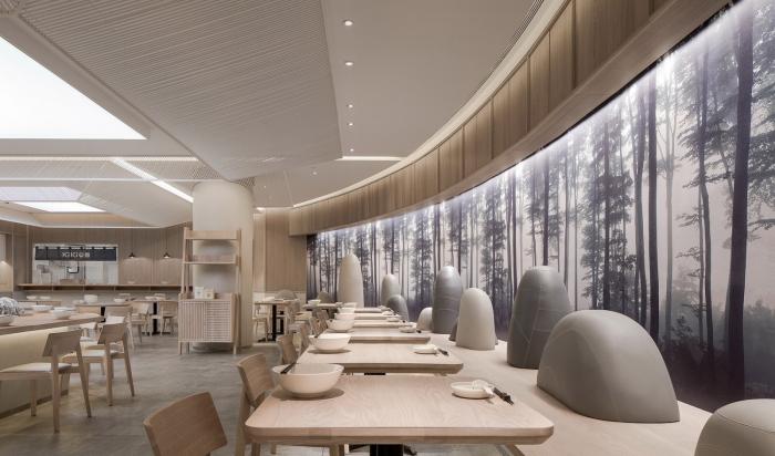 以綠色環保為重點,在材料選擇,餐廳背景墻設計,以及小的裝飾和點綴上都岀綠色、健康、自然。把餐廳設計成一個可以呼吸的生態系統,讓人們在用餐中就能體會到投身大自然的深刻感受。